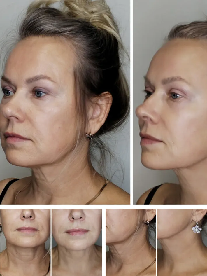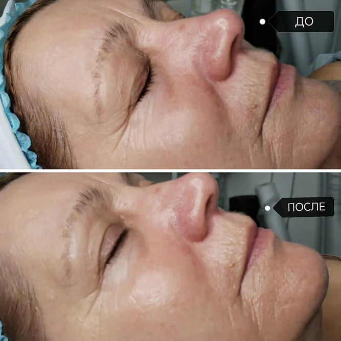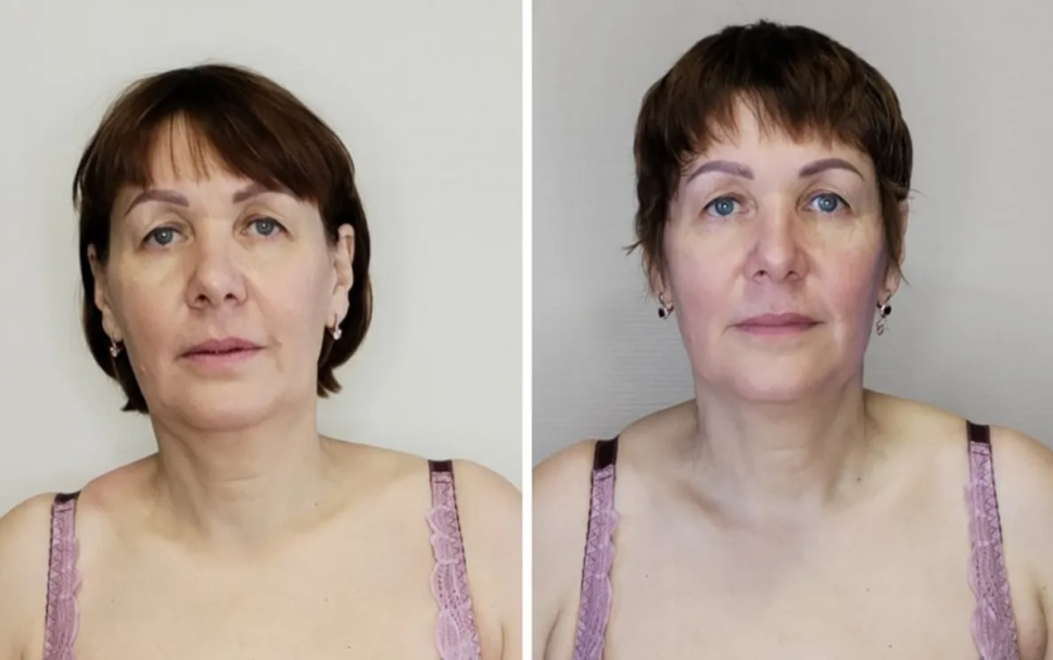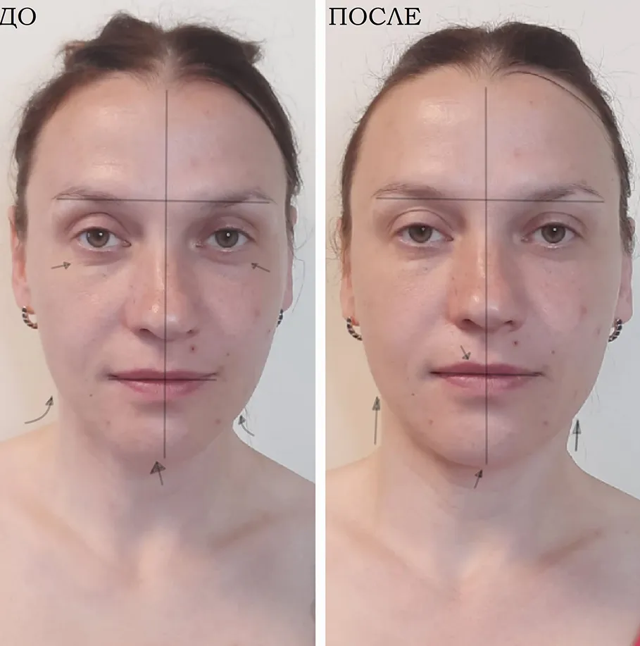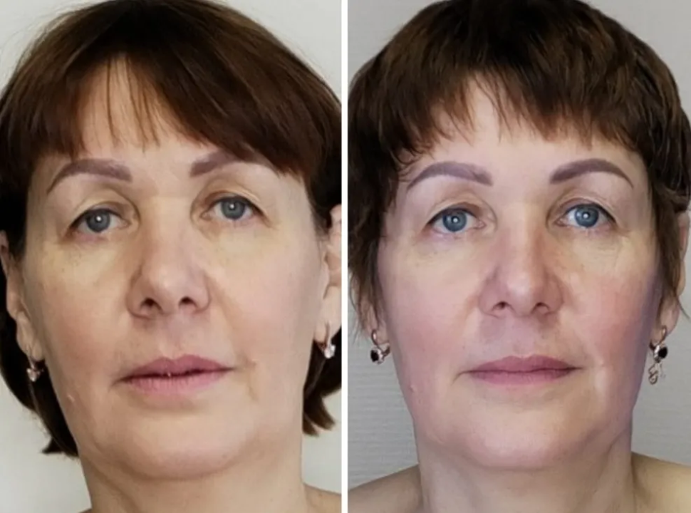 Лицо выглядит более свежим и подтянутым.